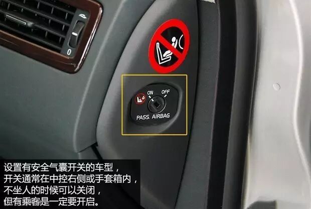 也有一种说法是当孩子坐在副驾驶时或是安全座椅倒装在前排是应当关闭气囊,因为气囊弹出的危害也许大于撞击本身。这里我们需要强调一下,有可能的话孩子一定不要坐在前排。