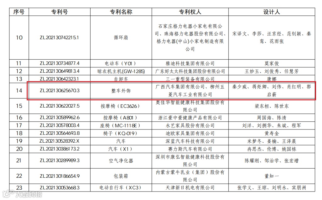 近日,国家知识产权局公布了第二十五届中国专利奖评审结果,广西汽车集团有限公司与柳州五菱汽车工业有限公司联合研发的“五菱太空舱”整车外饰专利荣获中国专利奖外观设计优秀奖。这一荣誉不仅是对广西汽车集团创新设计能力的高度认可,更是柳州汽车产业向高端化、智能化转型升级的有力见证。