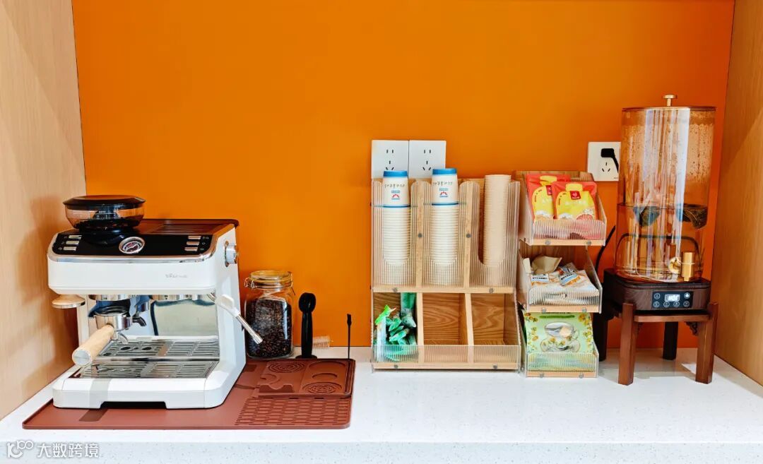 驿站贴心配备多种实用设备,全方位守护员工日常所需。制冰双开门冰箱、多功能微波烤箱、餐具消毒柜、现磨咖啡机、多档温控直饮水等设备一应俱全,让美味与温暖随时相伴,为日常注入满满活力。