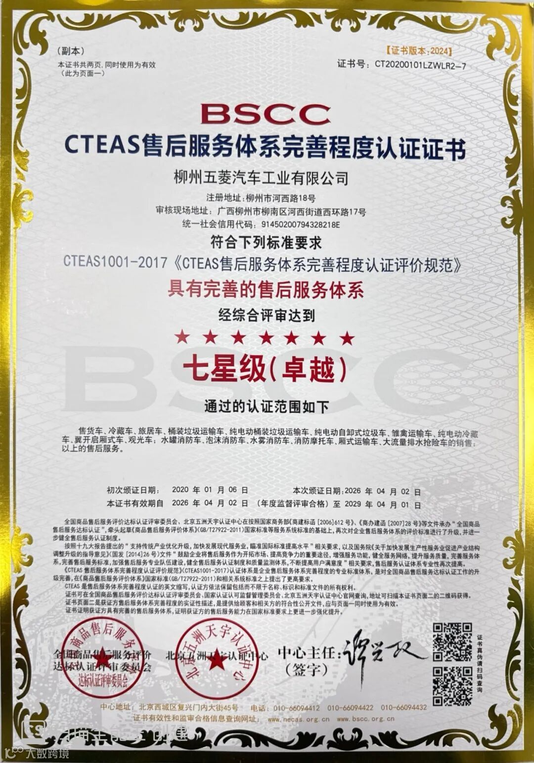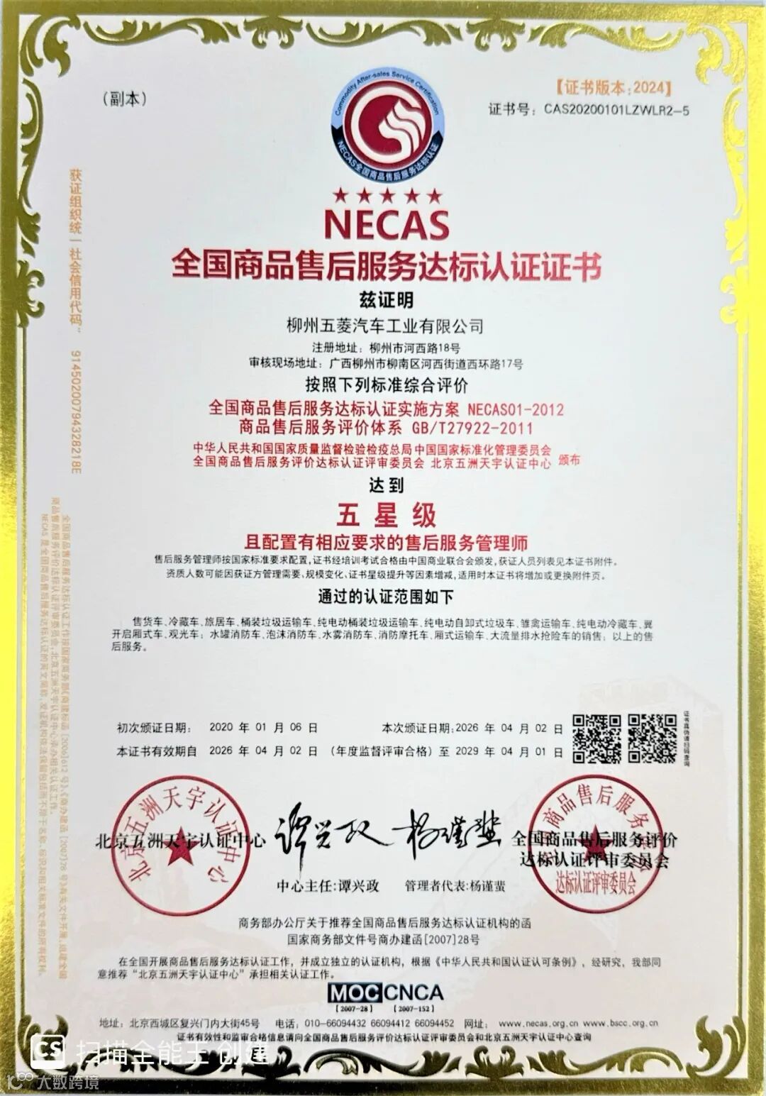 此次成功延续后,五菱工业持有这两项认证的累计年限将达到9年,持续“领跑”国内专用车售后服务领域。