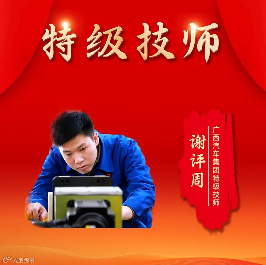 谢评周是集团所属五菱科技装备制造部高级技能专家,先后荣获全国五一劳动奖章、全国青年岗位能手、国务院政府特殊津贴专家、广西工匠、广西技术能手,广西五一劳动奖章等荣誉。从事钳工工作已14年,带领工作室成员参与完成自主革新项目850多项,交付自动化装备2200余台套,为企业直接创造经济效益超亿元。积极开展“传、帮、带”工作,培养了多名高技能人才。