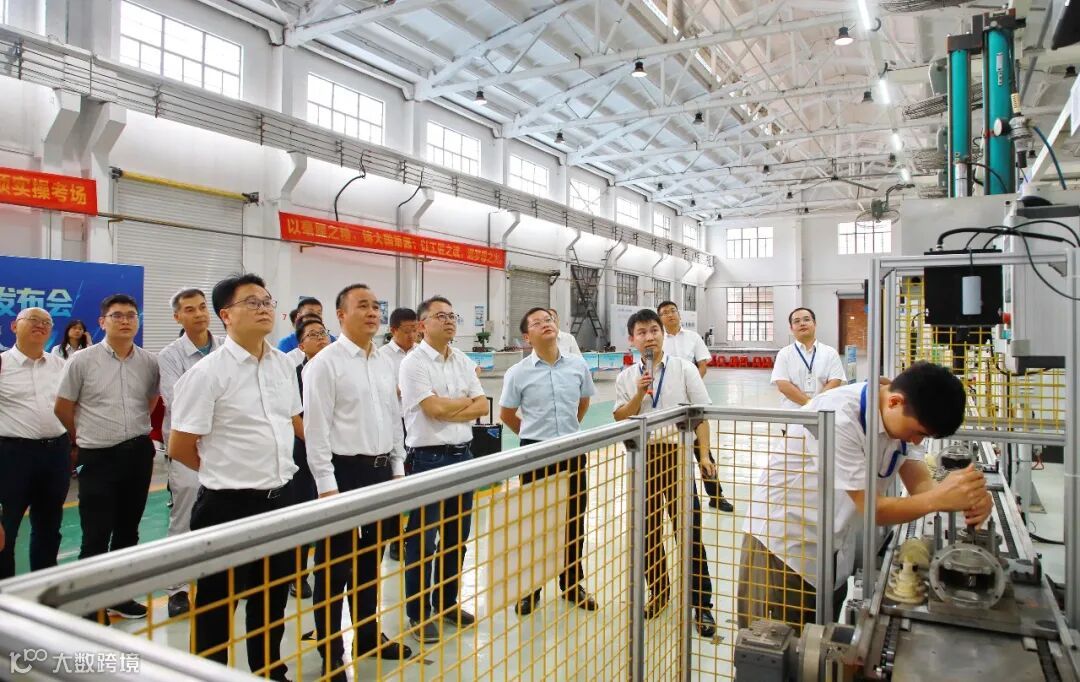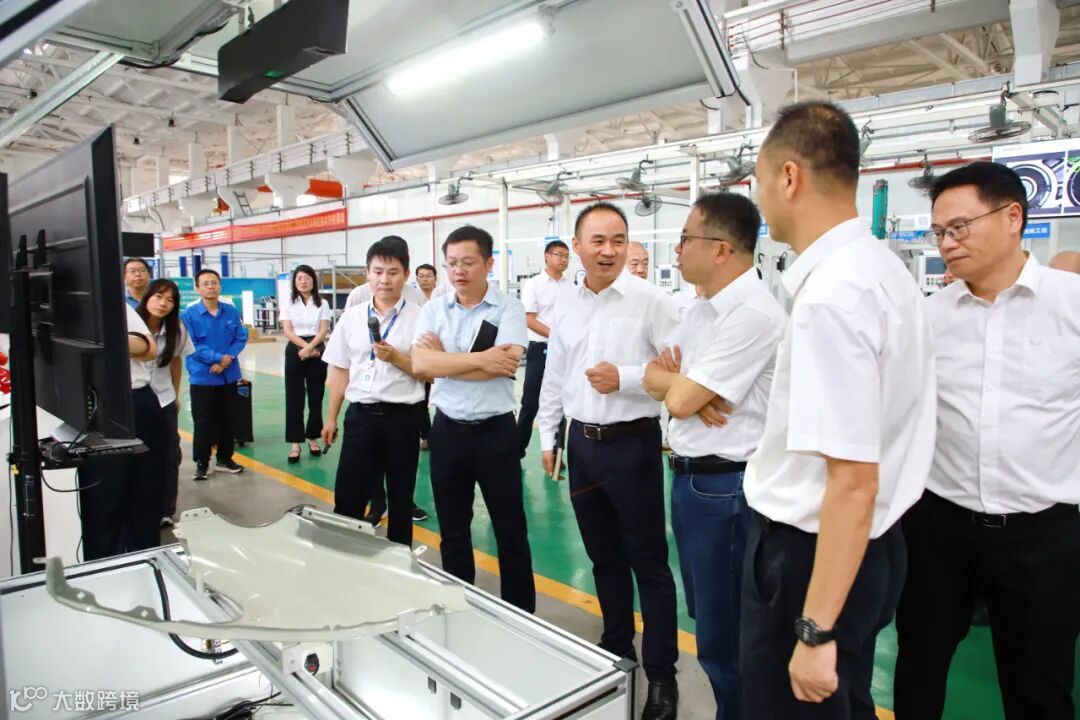 仪式结束后,魏明刚一行参观模拟产线区,仔细了解人工智能相关产品情况。