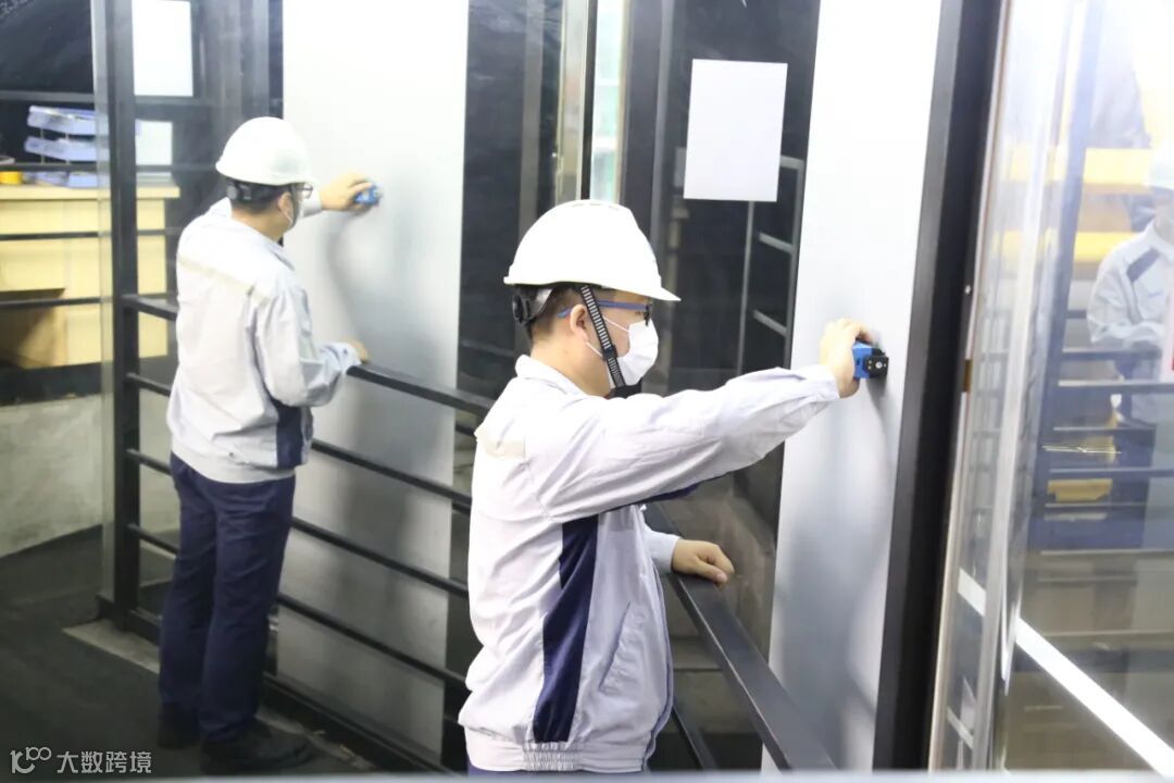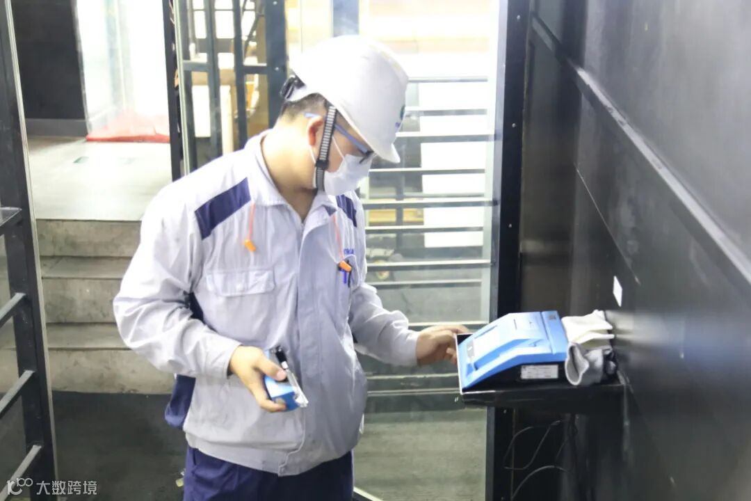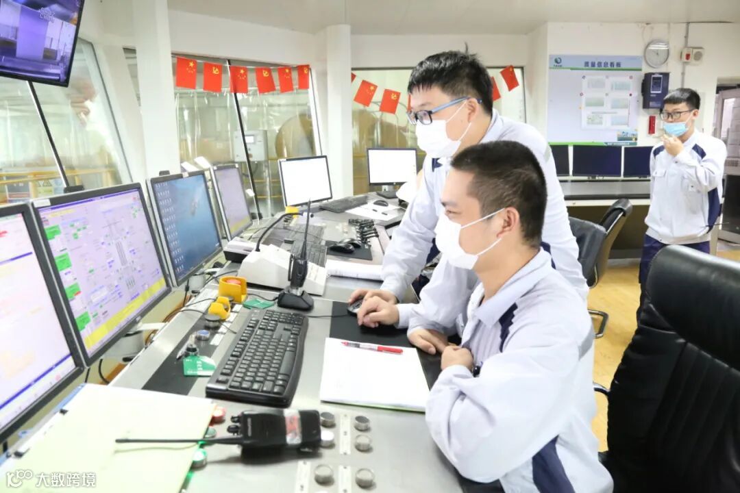 ▲王现龙与同事在查看出口区域HMI界面