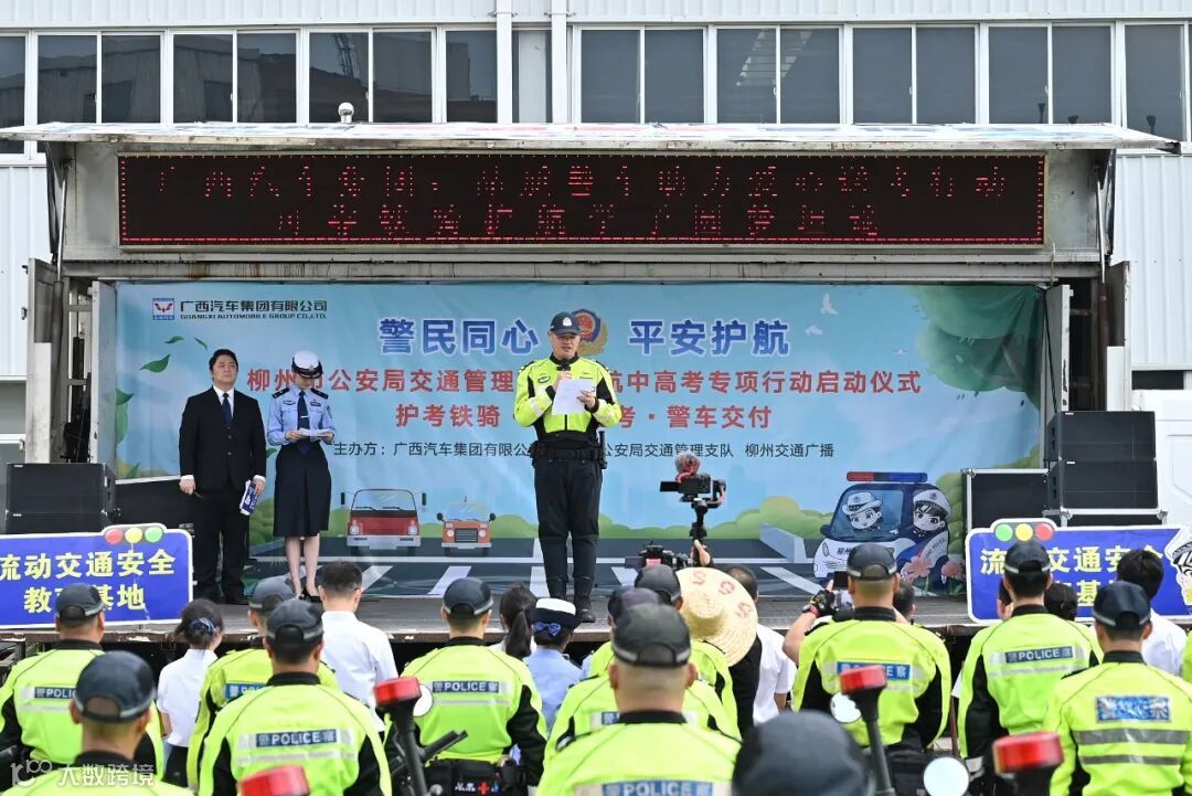 6月6日,由广西汽车集团、柳州市公安局交通管理支队、柳州交通广播共同主办的“警民同心 平安护航”柳州市公安局交通管理支队护航中高考专项行动启动仪式在广西汽车集团河西基地顺利举行。集团交付30台警用摩托车,助力柳州学子平安逐梦。