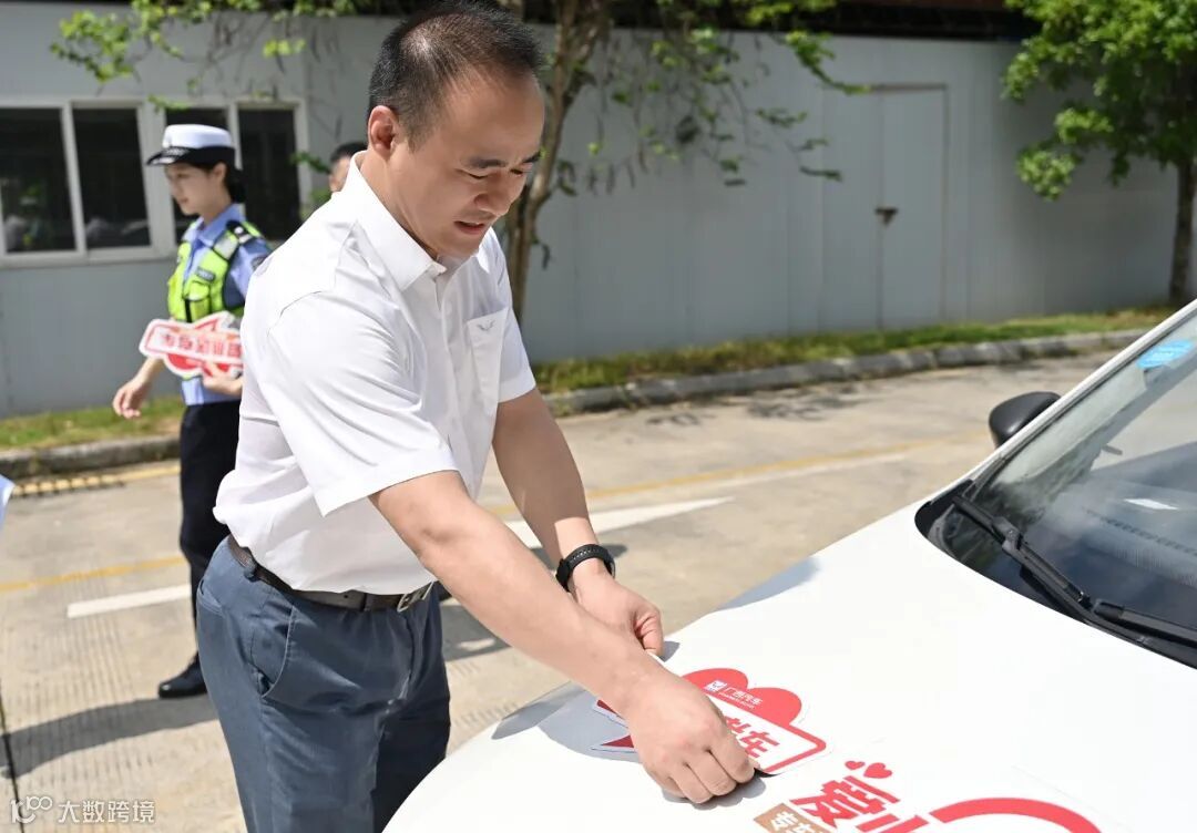 随后,现场领导嘉宾为爱心车队贴上爱心车贴,进行责任与温暖的接力,为莘莘学子赶考之路注入爱护与关怀。