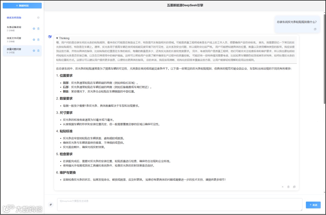 今年3月,柳州五菱新能源成功部署国产DeepSeek(70B)大模型引擎,并于5月份在整车生产制造领域得到了落地应用。