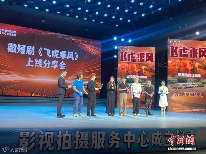 中新网柳州8月27日电 8月27日,“拍在广西”影视拍摄服务中心成立仪式暨微短剧《飞虎乘风》上线分享会在柳州融媒体中心演播大厅举办。