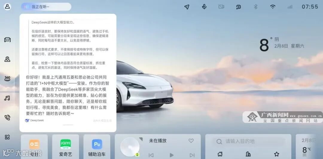 2月7日,思必驰天琴语音助手在短时间内迅速实现DeepSeek接入上汽通用五菱生产的宝骏享境汽车,成为行业首批将AI 前沿技术应用于量产车型的品牌。作为国内专业的对话式人工智能平台公司,思必驰助力合作伙伴上汽通用五菱与DeepSeek完成深度融合应用。