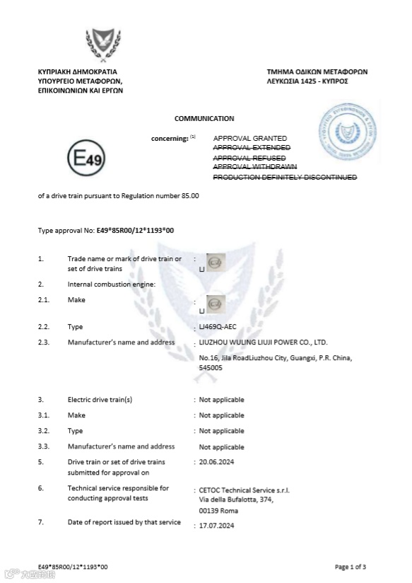 顺利通过欧洲经济委员会E-mark认证