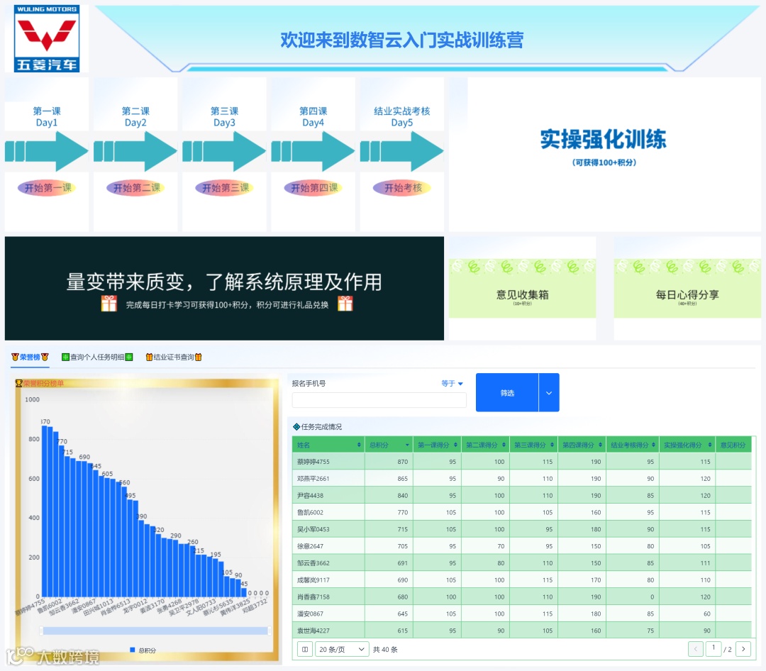 本次训练营以"数智云"平台为技术底座,构建了"理论筑基-场景实战-方案孵化"的三阶赋能体系,形成了理论-实践-反馈的螺旋上升的培养机制。数智云平台的学习路径推荐引擎,基于学员的120个能力维度画像智能推送个性化学习资源包,使学员技能成长速度较传统培训提升了58%。