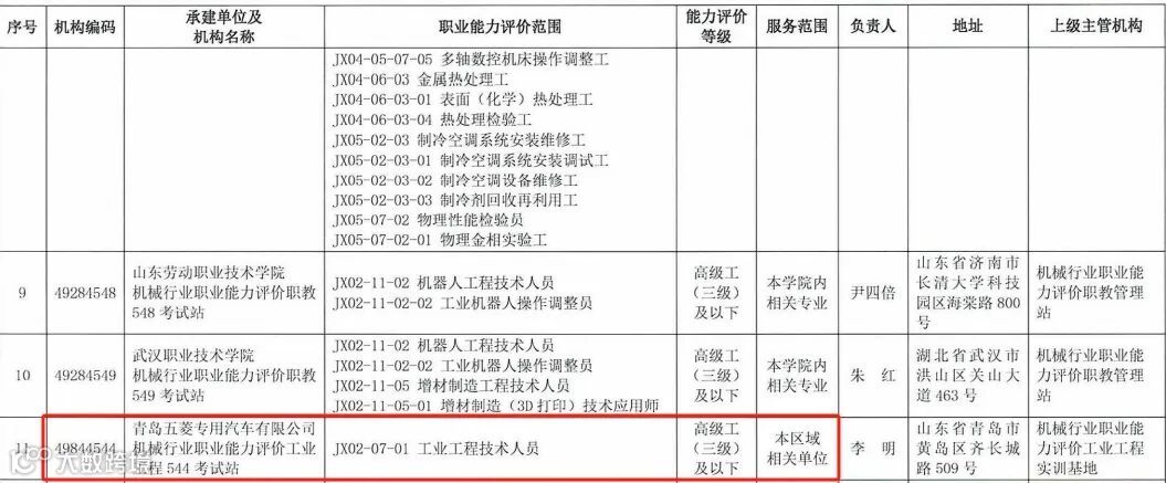 广西汽车集团近日,中国机械工业联合会发布《关于同意机械行业2024 年第三批机构注册的批复》,青岛五菱专用汽车有限公司成功获批机械行业职业能力评价工业工程544考试站。