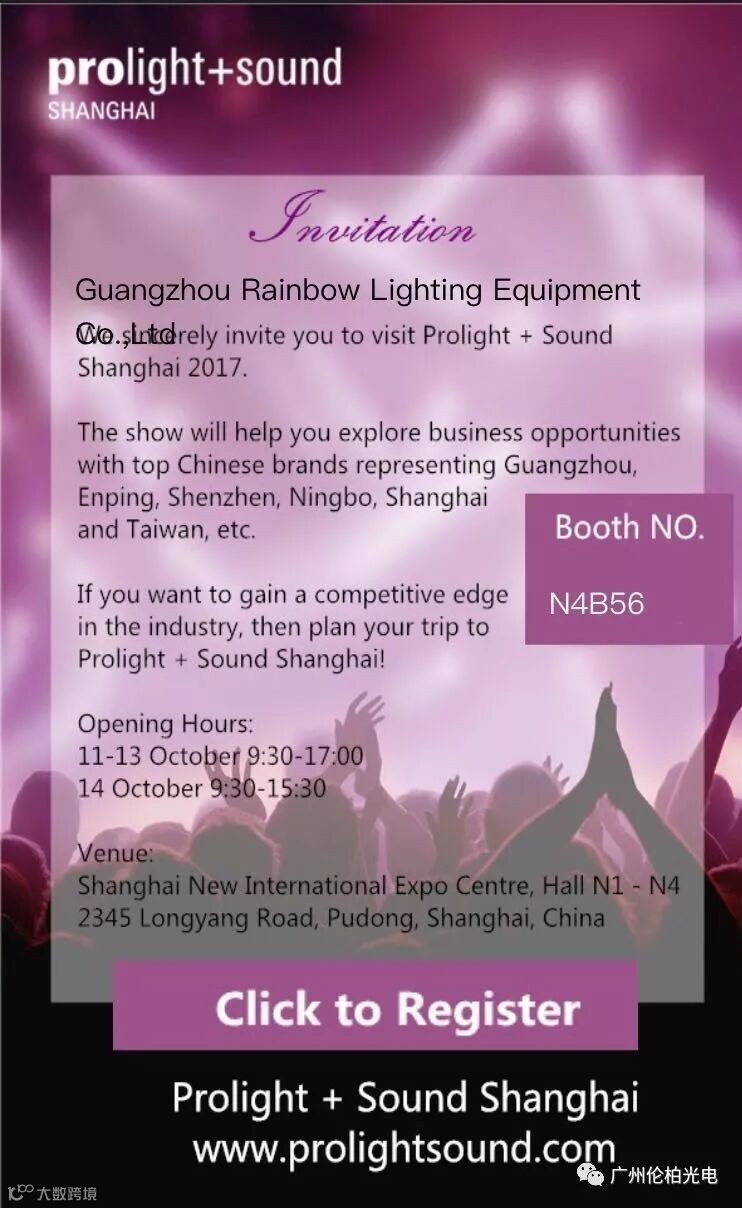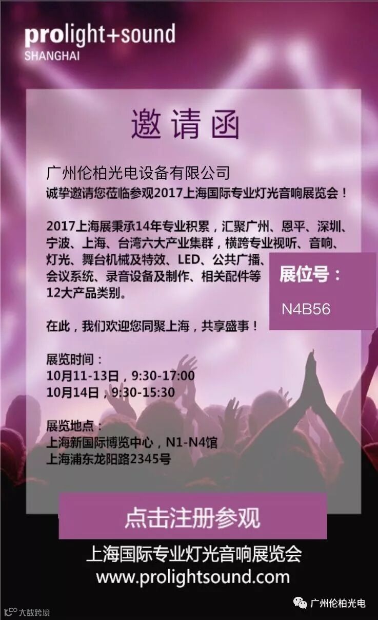 导读:广州伦柏光电设备有限公司诚挚邀请您莅临参观2017上海国际专业灯光音响展览会!