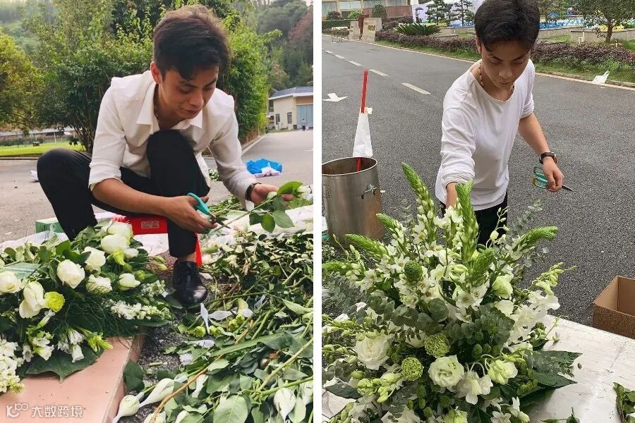 他擅长活动会场布置、鲜花祭台、鲜花伴灵等各种花艺作品的制作,每年清明期间,是他最忙的时候。他很清楚,清明对于他而言,从来不意味着休息,而是忙碌的工作和更多的责任。