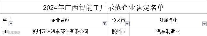五达汽车部件有限公司入围,被认定为智能工厂示范企业。