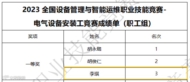 来自广西汽车集团柳州五菱汽车科技有限公司选手李琪荣获一等奖,综合成绩为第三名。