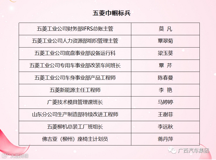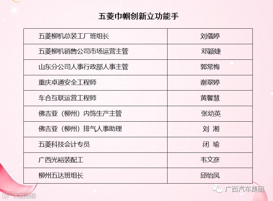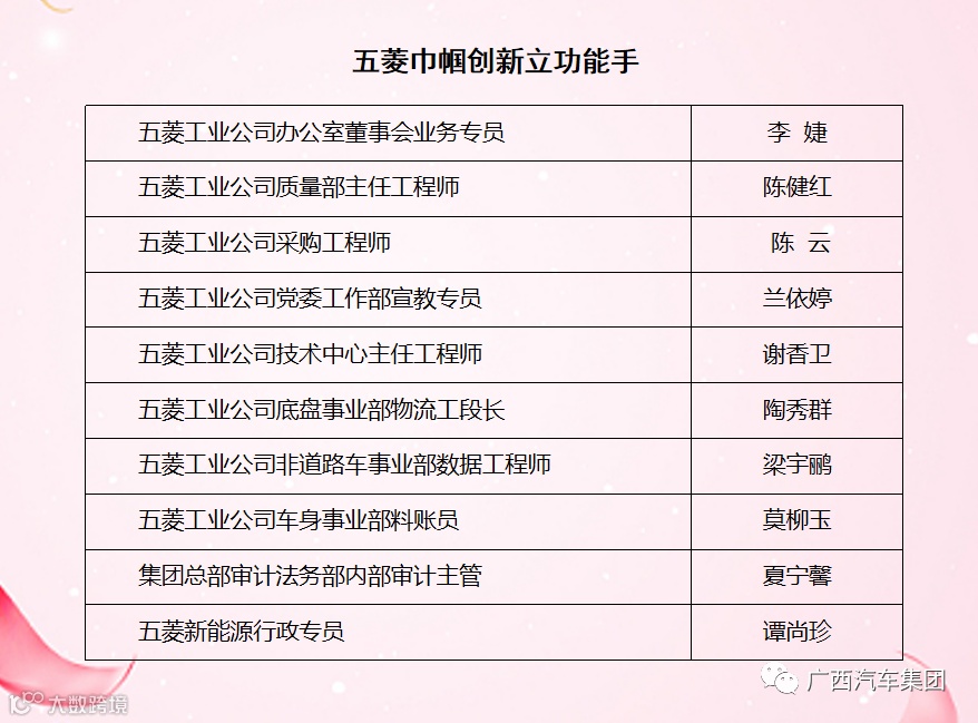 公司女高级总监、一级总监,基层女分会主席,全国巾帼文明岗获得者五菱新能源标准法规科参加活动。