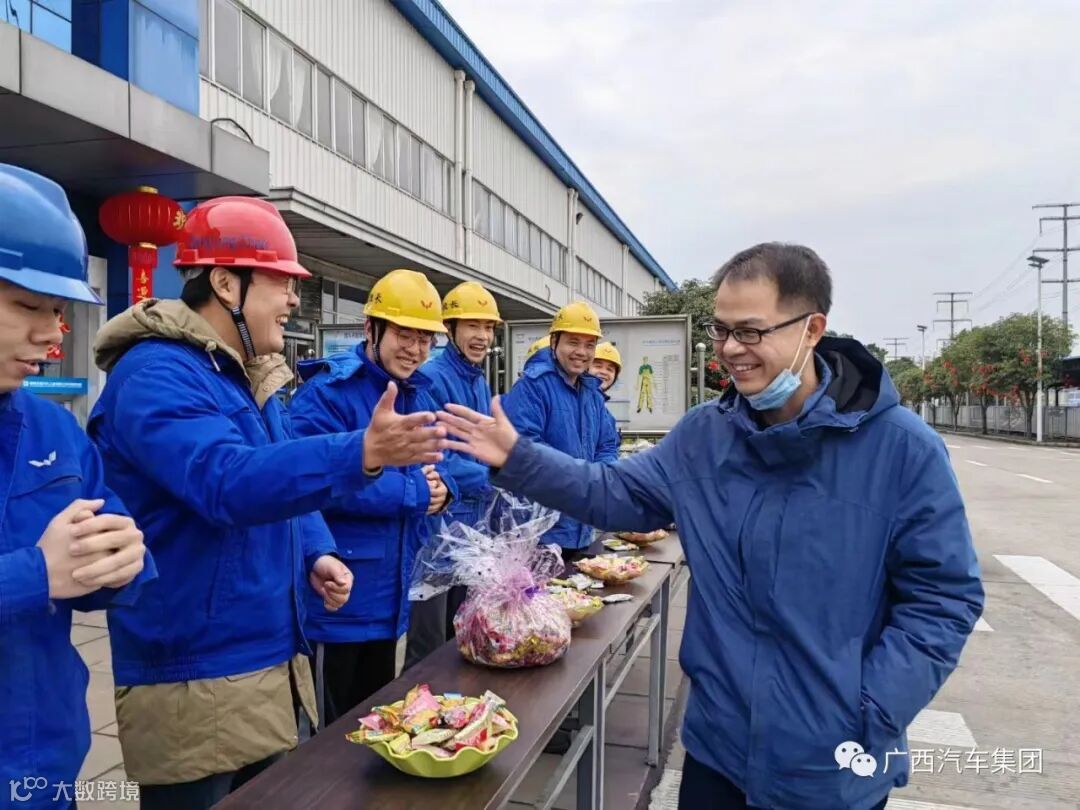 车身事业部柳东车间,利是糖饼、热情的笑脸正等着返岗的员工,大家热情高干劲足早早来到生产车间,做足准备,机器的轰鸣声悦耳动听。南宁基地也于今天满速开工,河西外饰、冲焊车间于1月27日开工,忙碌的身影彰显着丰收的前景。