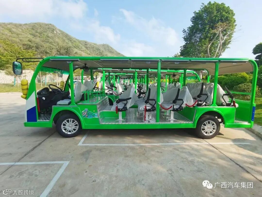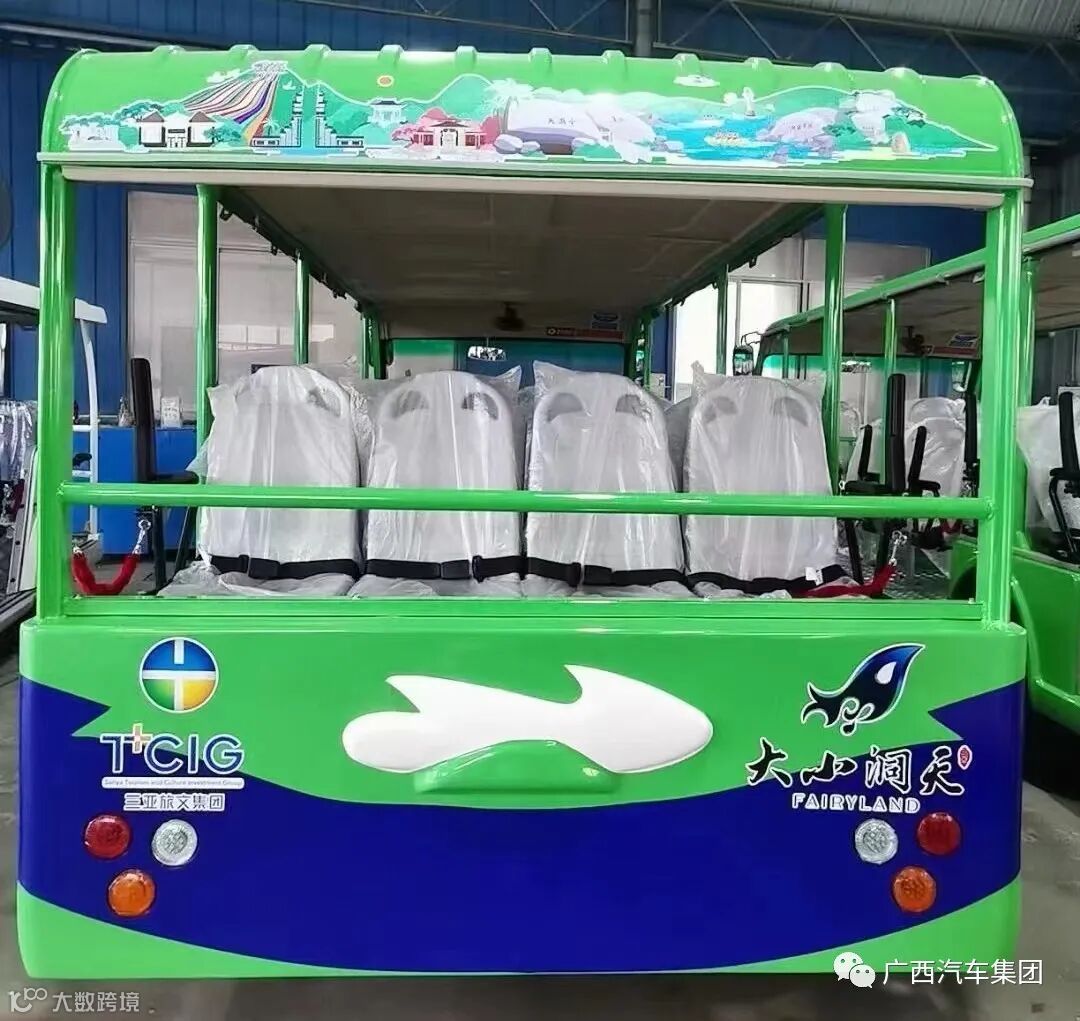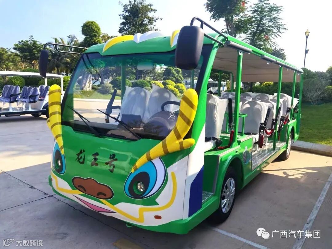 三亚大小洞天是我国最南端的道家文化旅游胜地,为国家首批5A级景区,自古因奇特秀丽的海景、山景、石景与洞景被誉为“琼崖八百年第一山水名胜”,根据当地神话打造出网红IP“鳌小九”。五菱工业充分发挥特殊定制能力和经验,将车辆和造型特征融为一体,打造出这款生动逼真、外形可爱、匹配度十足的鳌小九主题游览车。