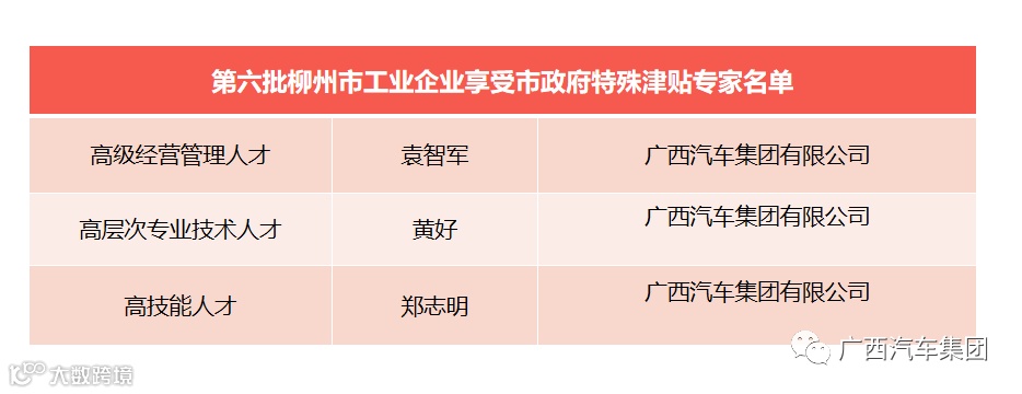 全市工业企业各类人才立足本职、潜心钻研,敢于创新、甘于奉献,为推动工业高质量发展作出了突出贡献,经严格推荐申报、专家评审、会议审核、公示等程序,此次共25 名工业企业专家享受第六批市政府特殊津贴。广西汽车集团袁智军荣获“高级经营管理人才”,黄好荣获“高层次专业技术人才”,郑志明荣获“高技能人才”。至此,公司共有15人获得过国务院政府特殊津贴,16人获得柳州市政府特殊津贴。