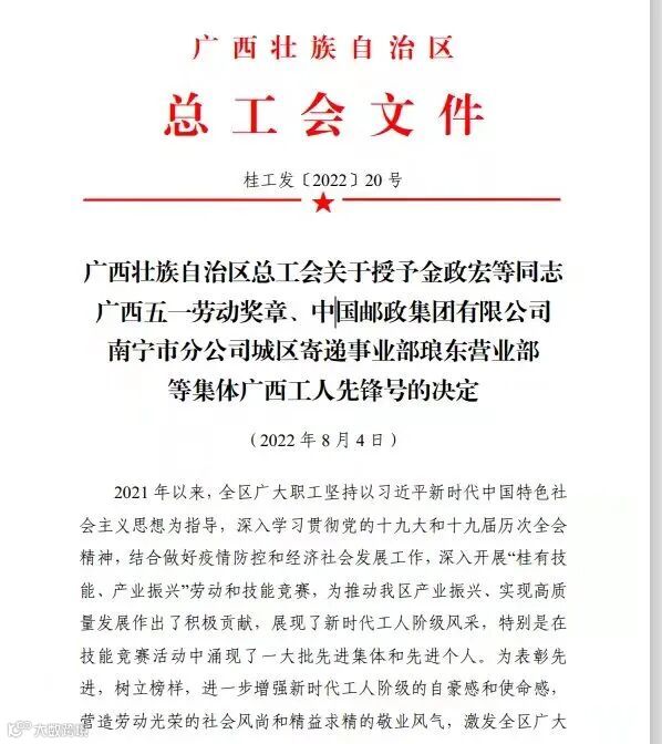 近日,从广西壮族自治区总工会传来喜讯,集团公司李琪在技能竞赛活动中成绩显著,荣获广西五一劳动奖章荣誉称号。