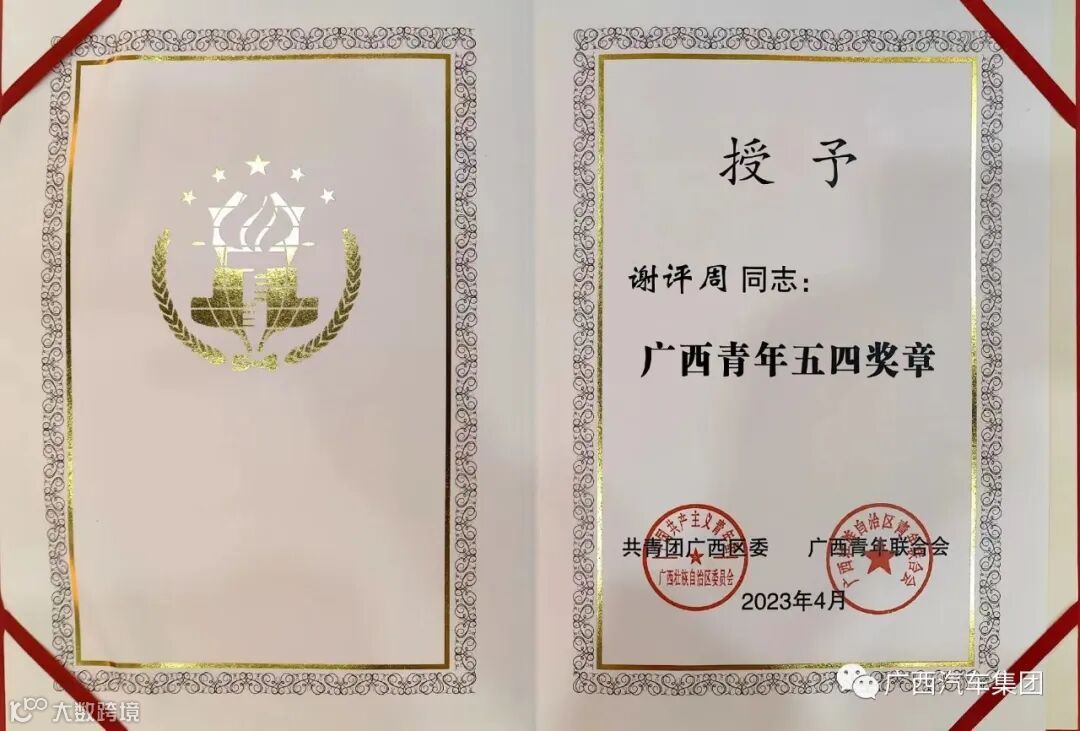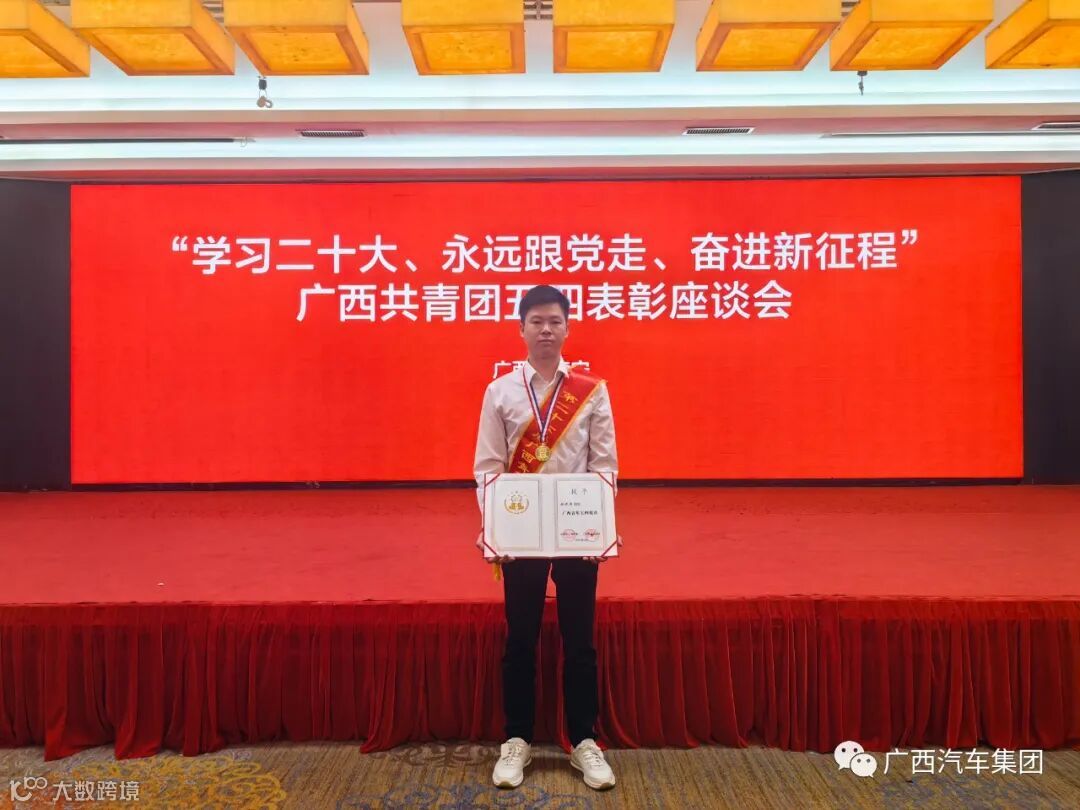 今天,在“学习二十大、永远跟党走、奋进新征程”广西共青团五四表彰座谈会上,广西汽车集团谢评周获得“广西青年五四奖章”。