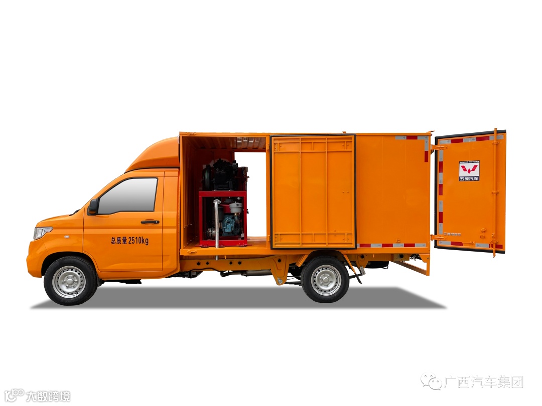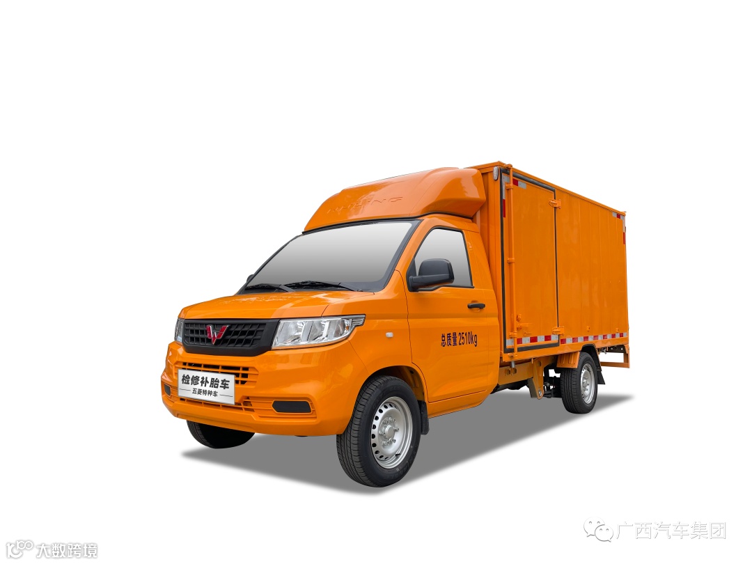 五菱检修车除底盘外,所有部装均由团队自主研发制造,整车厢内加装了空压机、举升器、LED应急灯等专业设备,能及时为在路上爆胎的车辆换、补轮胎,解决司机和乘客的燃眉之急保证后续行程安全。为提高客户满意度及使用感,团队成员精益求精,积极走访市场,紧盯制造细节。
