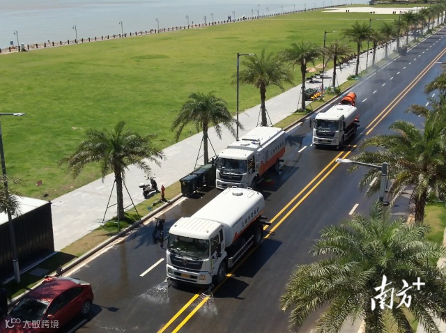 环卫车辆在马鞍岛上作业。受访者 供图