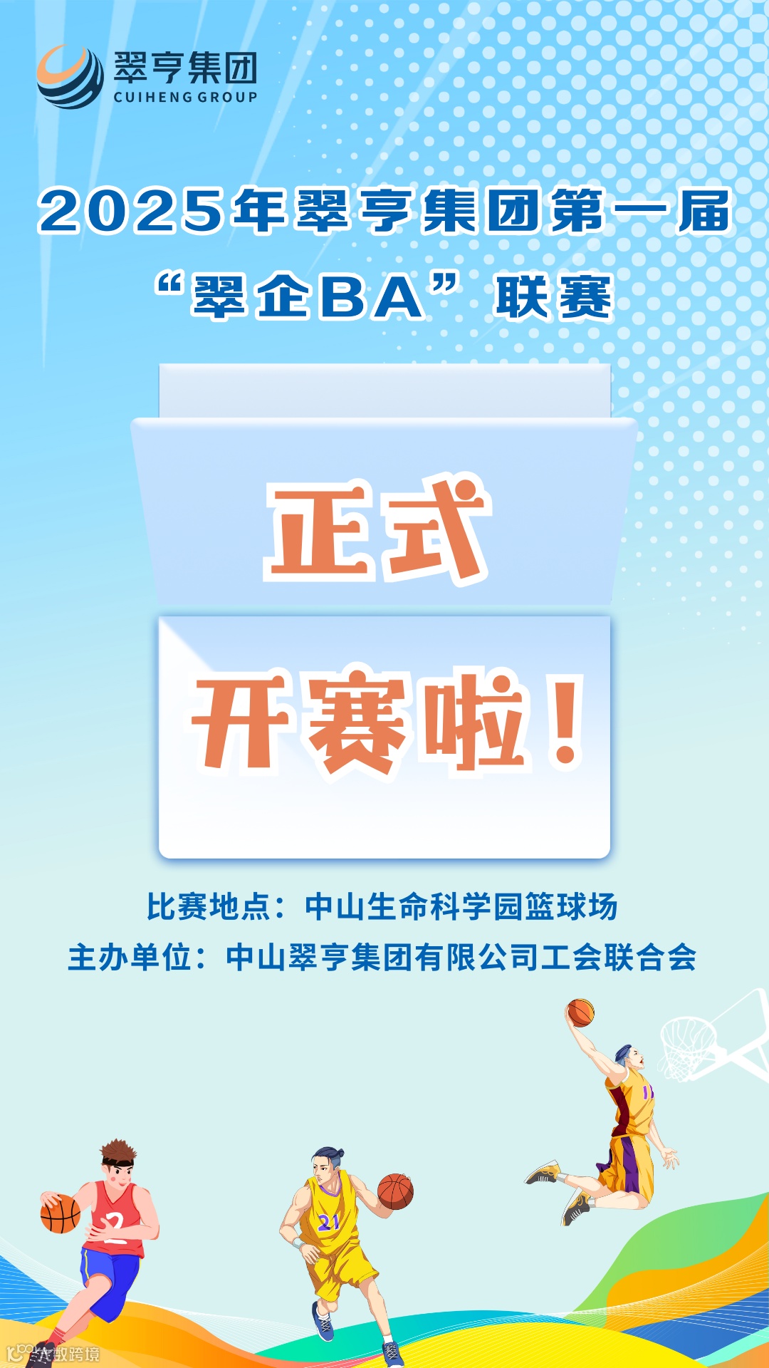 第一届“翠企BA”联赛不仅是一场篮球盛宴,更是翠亨集团构建高品质园区生态、凝聚发展合力的生动实践。让我们共同锁定赛事进程,为每一位拼搏的运动员喝彩,期待见证巅峰对决的精彩时刻!
