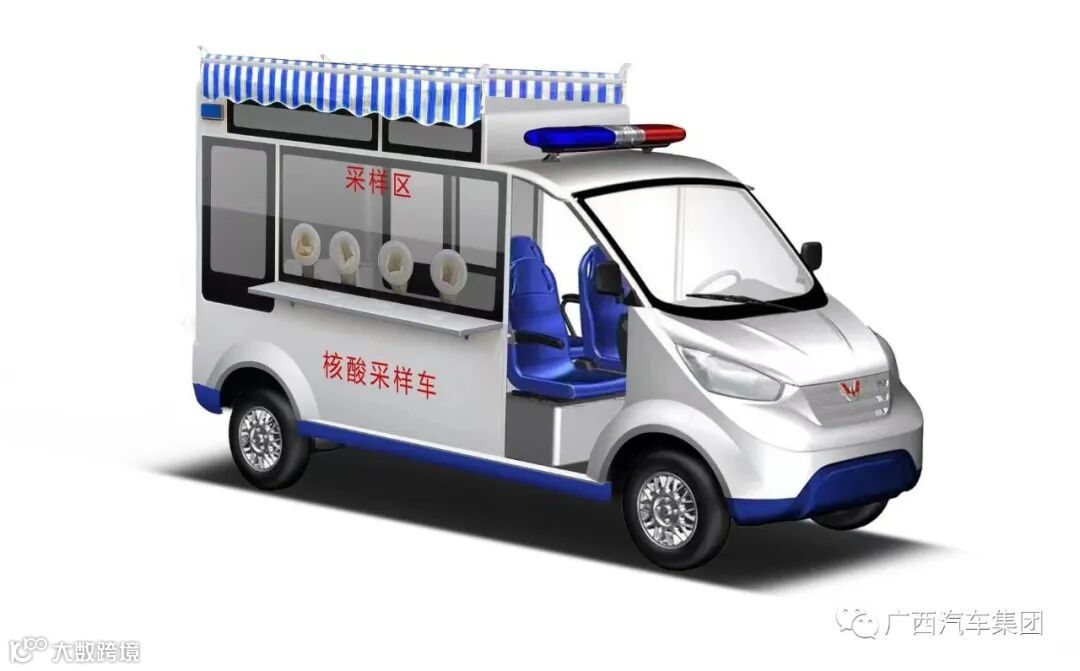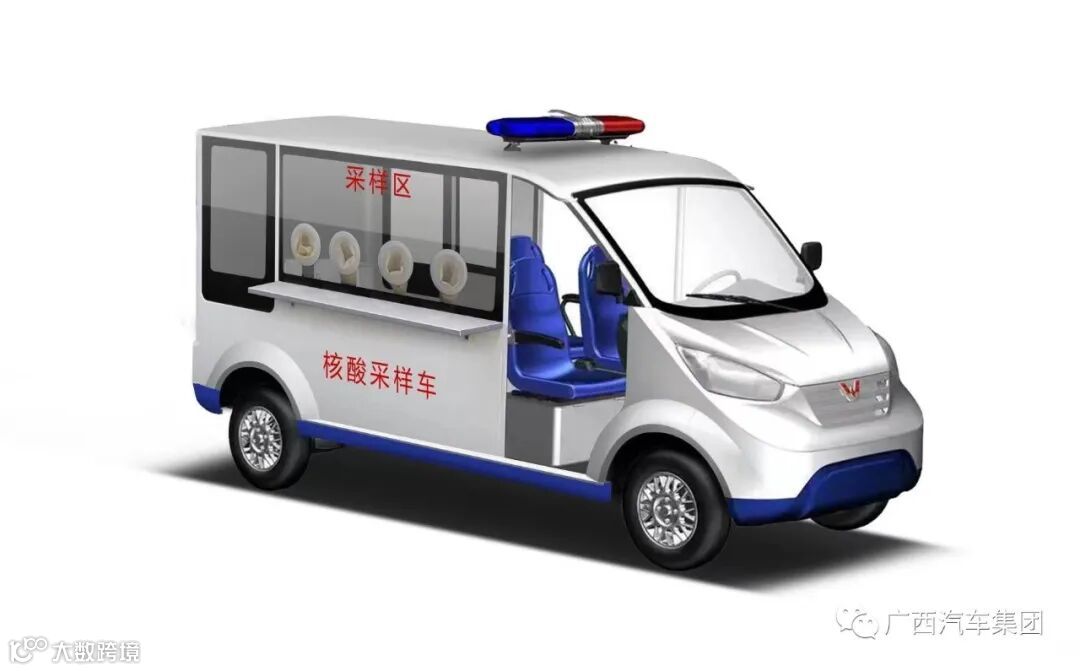 升级后的五菱核酸采样车可乘坐4-6名工作人员,同时采样两个人,配有密闭采样舱、空调及紫外线消毒等功能设施,满足采样、转运标本、终末端消毒等采样全流程需要,工作人员能保证不被感染的情况下,自由调节车内温度,如同在室内一样比较舒适地工作,提升了工作效率。