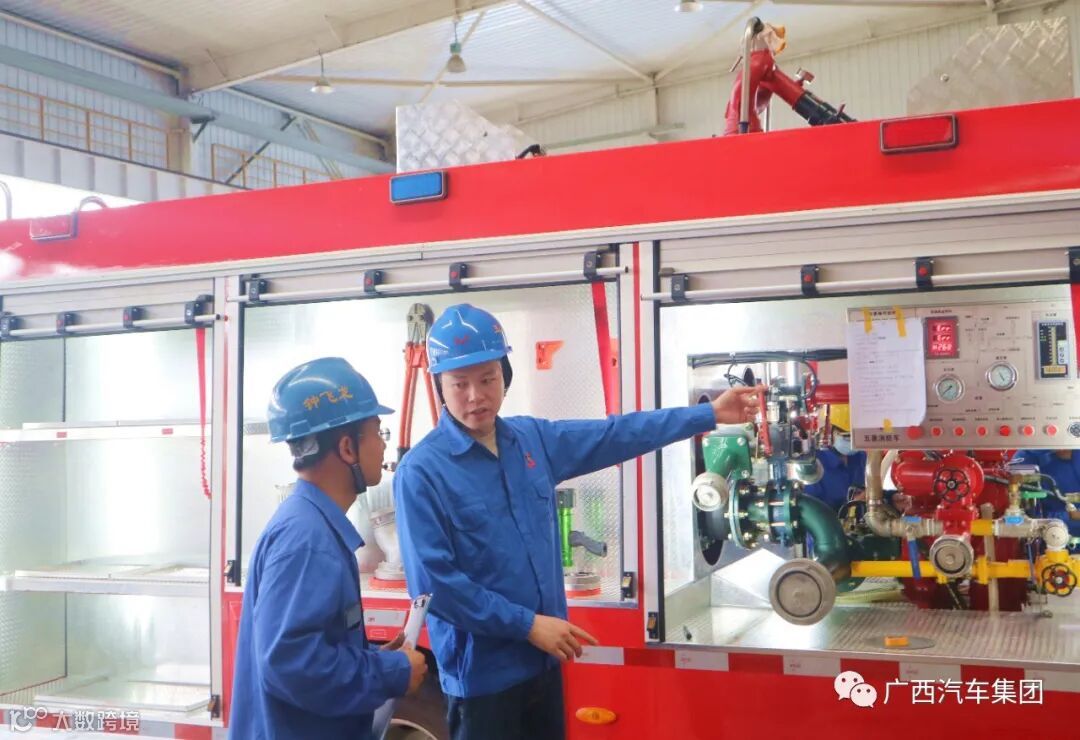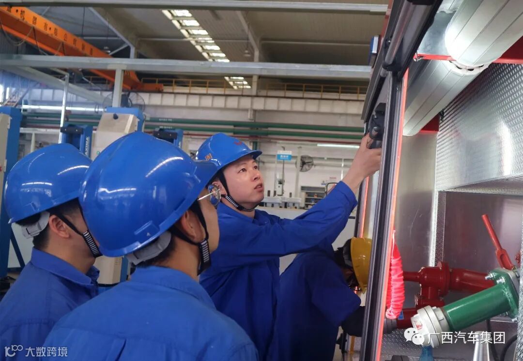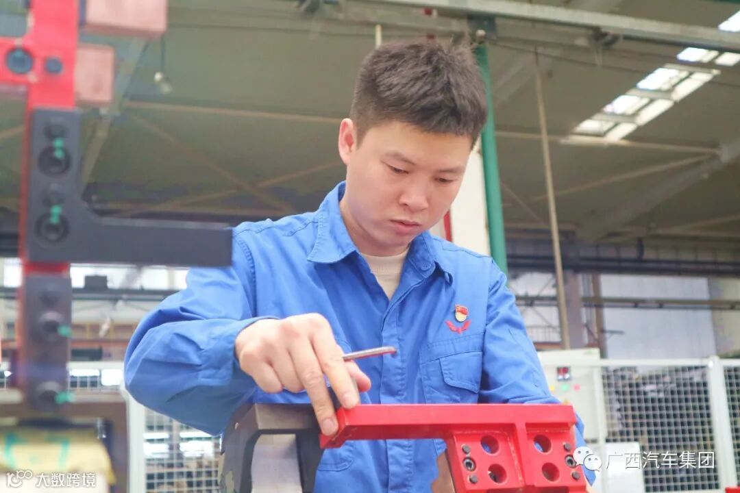 广西汽车集团装备制造事业部装备制造工段长 谢评周(中间)