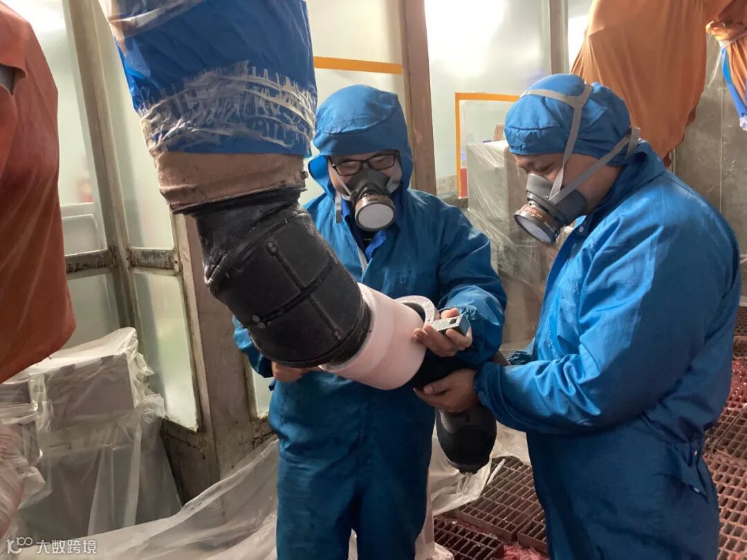 凌晨1:24,重庆卓通的底盘车间工段长在打磨可疑物料。