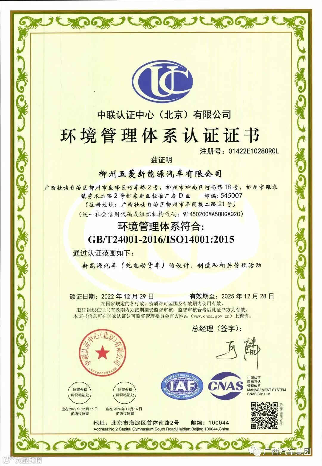 此次五菱新能源获得“三体系”认证证书,不仅系统建立了先进的节能、环保、职业健康管理模式,进一步了提高公司的管理水平,树立了绿色制造的理念为公司后续发展积蓄前进的动力。