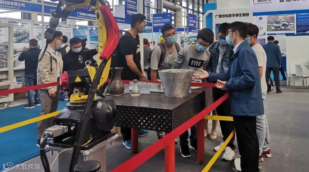 不同国家的客商、投资商、观众到五菱展馆参观洽谈