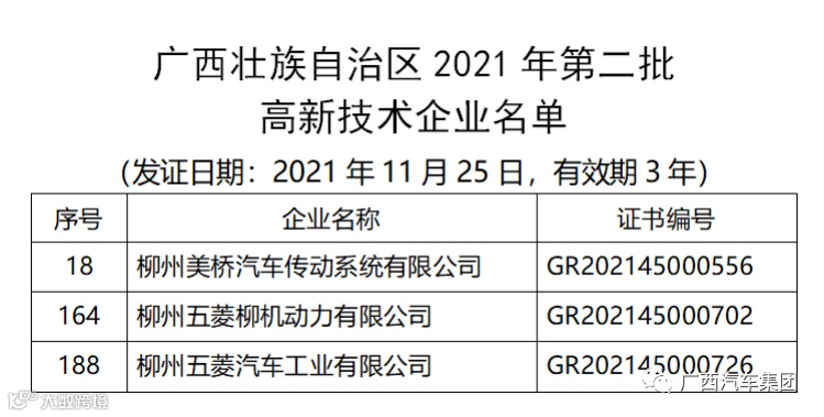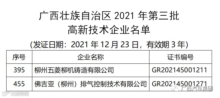美桥、五菱柳机铸造、佛吉亚(柳州)排气首次通过认定
