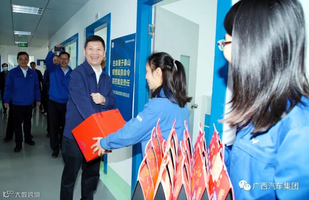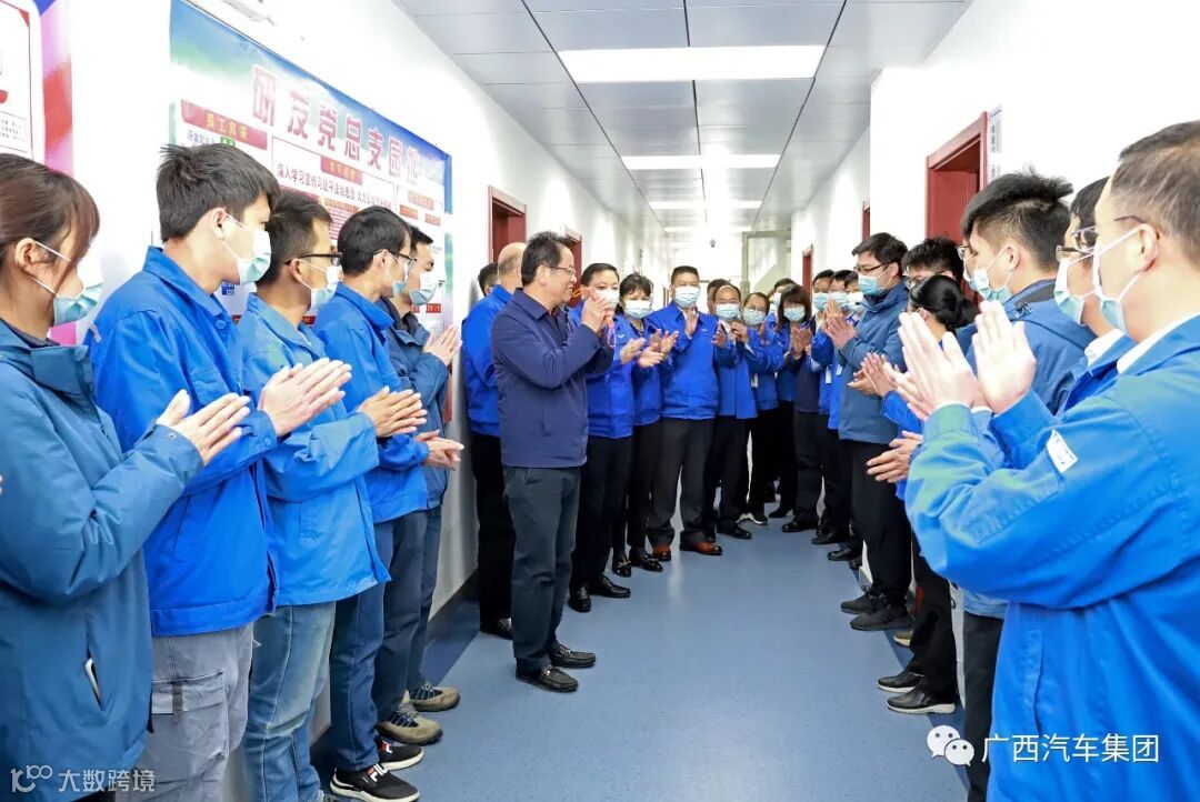 之后,袁总一行前往制造大楼,分别与财务部、采购部、质量部、生产制造部、信息部、柳东整车项目组等部门员工逐一拜年,感谢广大员工为企业高质量发展做出了的辛勤劳动和贡献,希望大家能发挥“艰苦创业 自强不息“的企业精神,在牛年更牛!