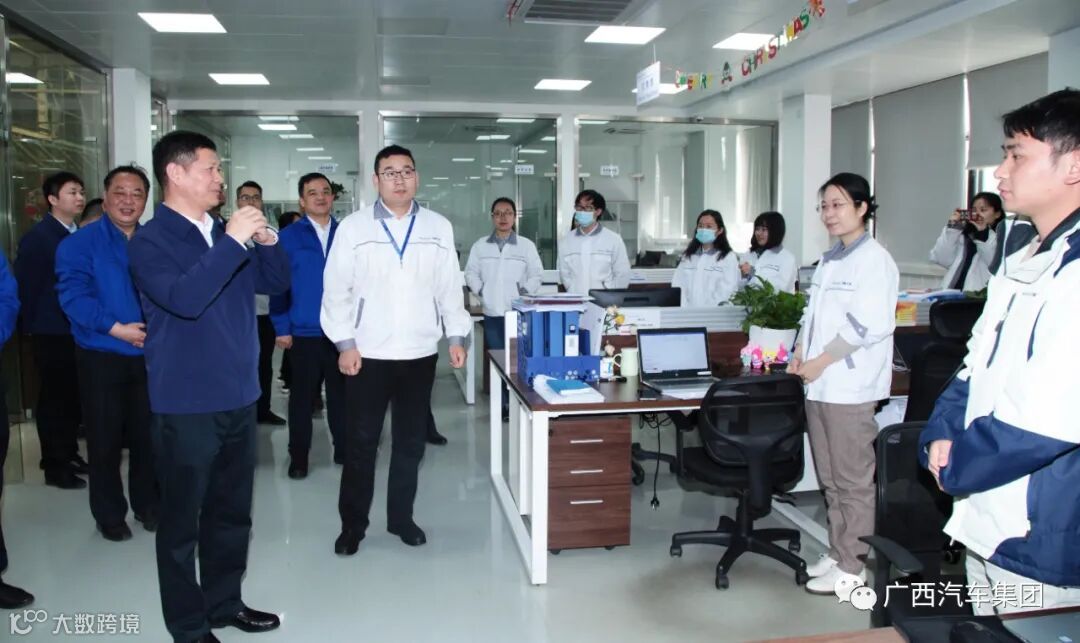 与此同时,总裁袁智军率领的管理团队第一站来到五菱科技,了解五菱科技团队建设及开工情况,并祝福团队牛年更上一个台阶,牛年牛气旺。