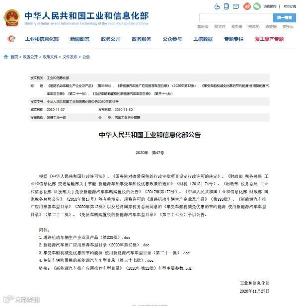 进入推荐车型目录,免征车辆购置税、车船税目录