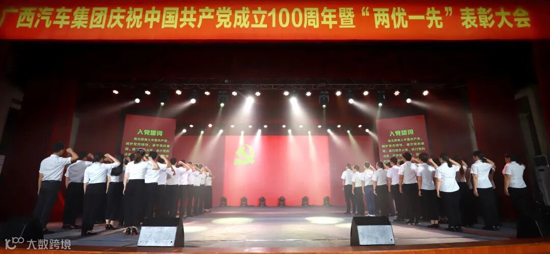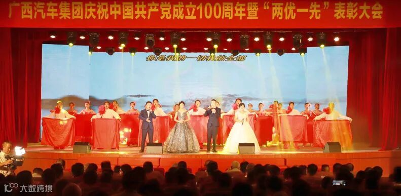 集团及工业公司领导班子与现场全体党员齐唱《没有共产党就没有新中国》,大会在嘹亮的歌声中落下帷幕。(转载自五菱人公众号)
