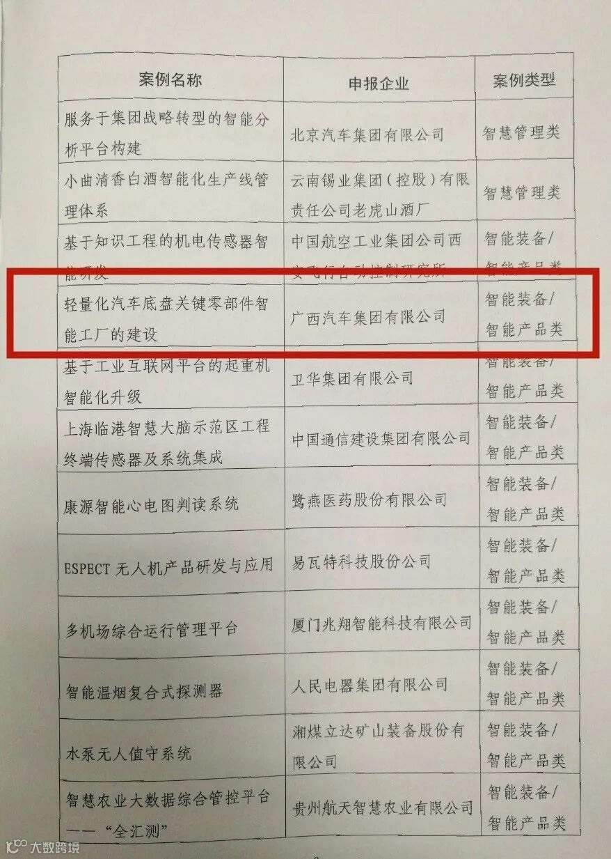 该项目围绕“一条智能生产线、一个智能车间、一个智能工厂”的思路,探索智能制造之路,将自动化、标准化的精益生产工序与工业物联网、云计算、大数据等新一代信息技术深度结合,致力从传统生产模式转型智能化生产,打造广西汽车集团智能生产制造新模式。