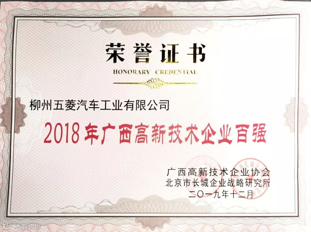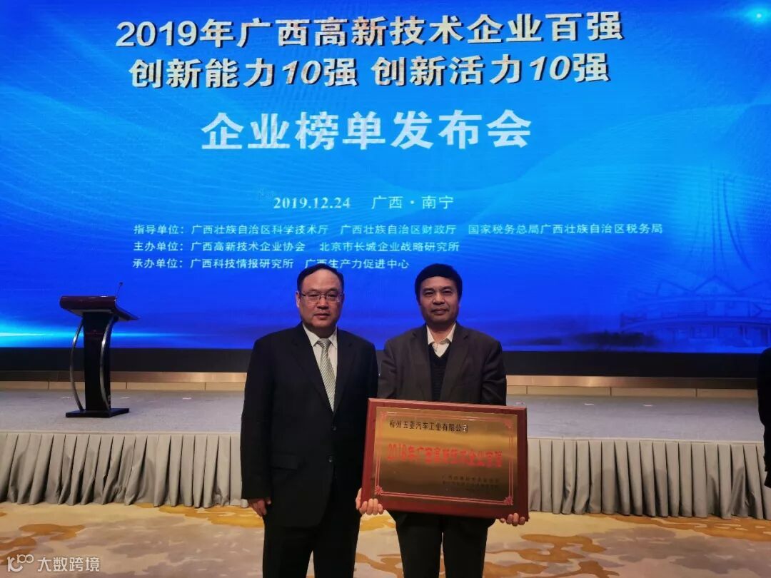 五菱工业作为第一批高企百强代表,公司副总工程师秦启斌代表上台接受授牌。