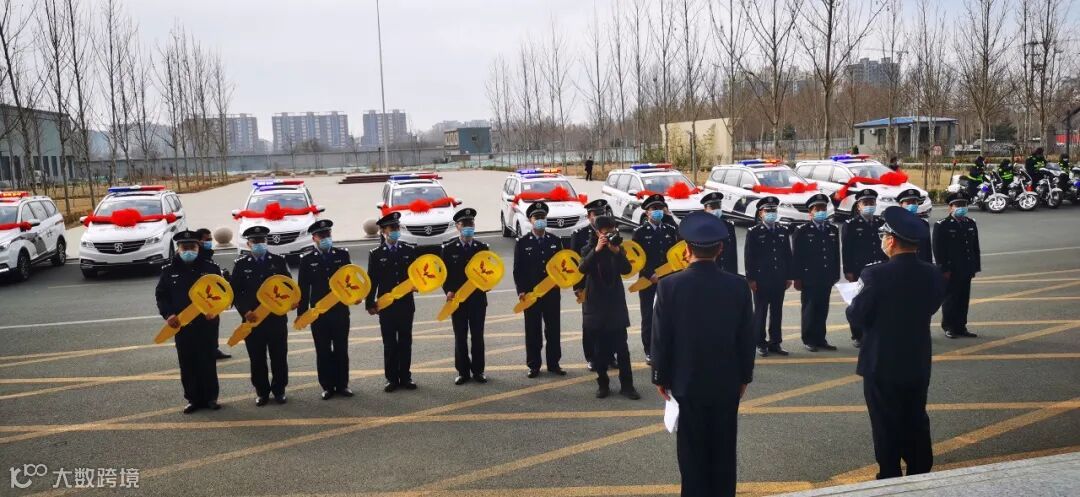 在邢台市任泽区公安局前,8台五菱警车也整齐列队,气场全开,入队河北邢台警备力量。