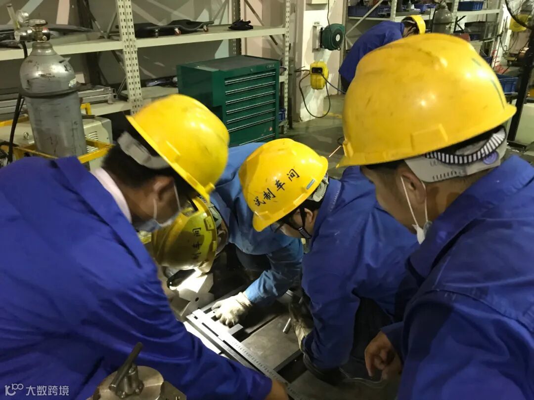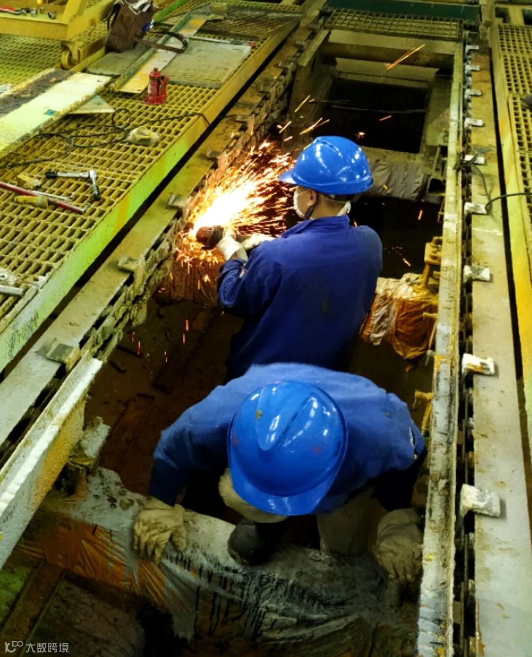为快速响应维修,不影响面漆走线,维修班团队加班加点,拆除导轨面板,在导轨沟道里细细寻找判断故障原因,电钻“笃笃笃”声、焊枪扬起的焊花与汗水汗湿的背影和脸庞,在沟道里相互交织映衬。