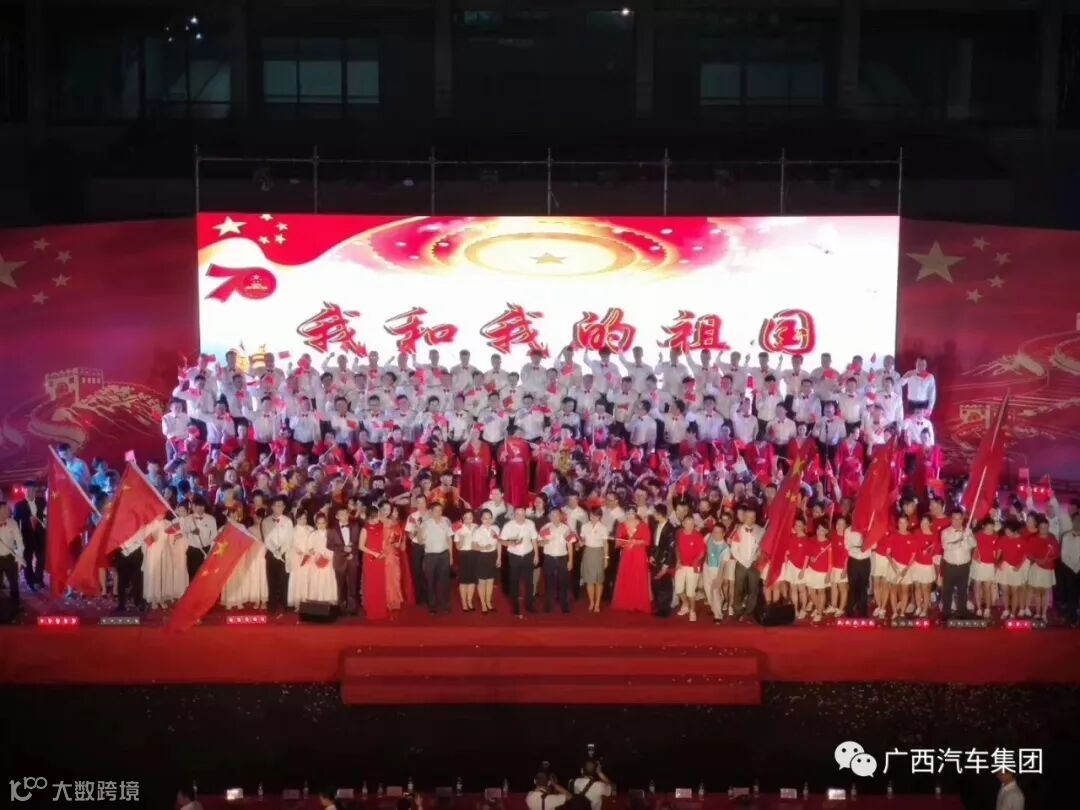 9月26日,广西汽车集团隆重举行“我和我的祖国”文艺晚会,喜迎新中国成立70周年,五菱人用优美舞姿、嘹亮歌声、真挚感情祝福您,祖国母亲生日快乐!