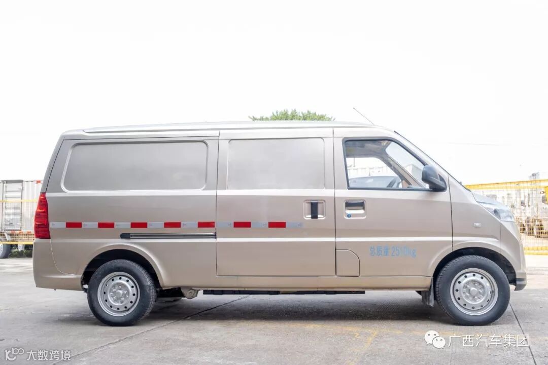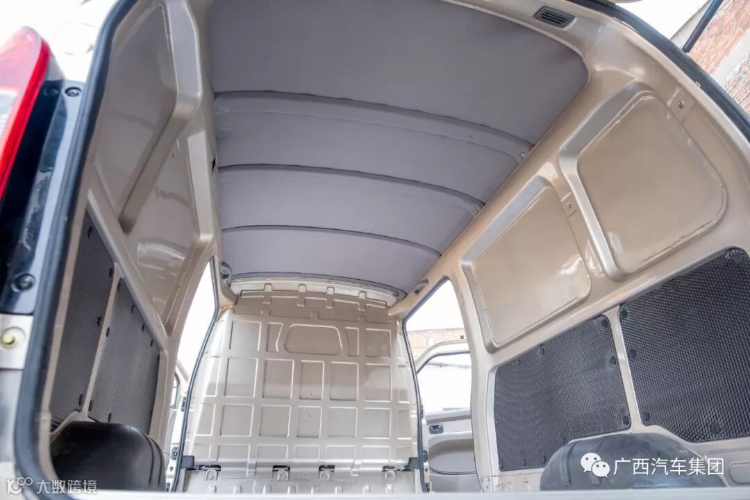 采用磷酸铁锂电池,匹配峰值功率60kw的名牌永磁同步电机,新车额定载重965kg,续航约330km(60km/h等速工况法),更值得关注的是新车高达5.2m³的货厢容积。