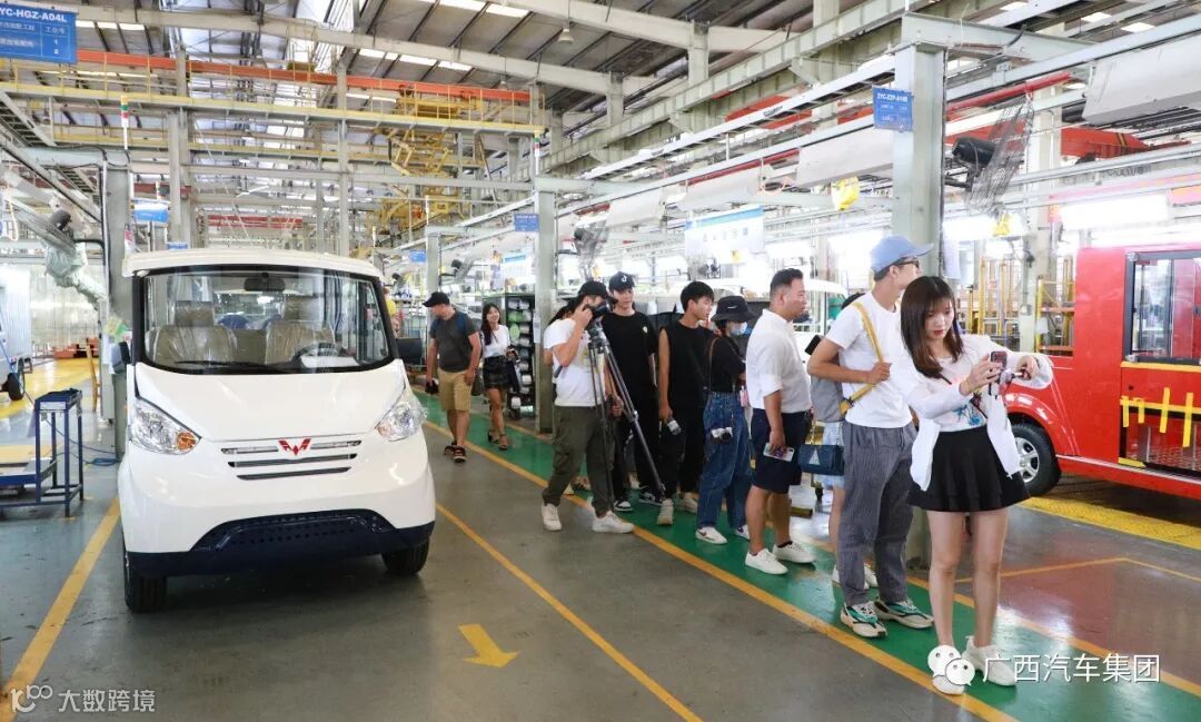 来到五菱观光车生产线旁,达人们纷纷向讲解员询问观光车的制作过程,认真听取观光车的生产工艺、优势性能,近距离观看观光车从装配到下线的每一个步骤。