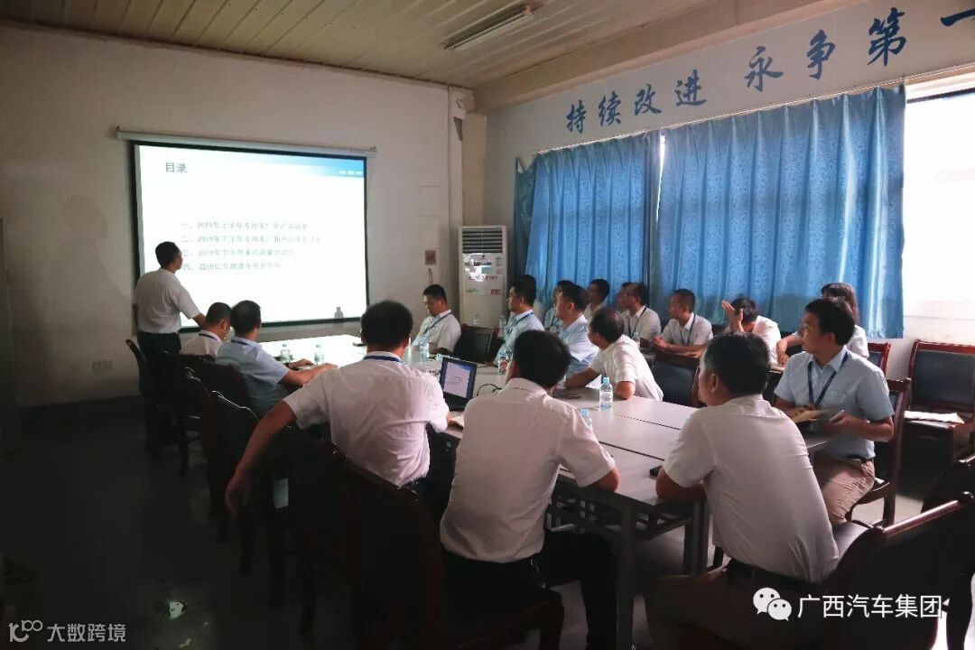 新产品现场参观之后,公司领导及关键人员到会议室召开专题会,回顾了上半年专用车新产品成果和下半年计划,同时进行了五菱微公交摆渡车效果图方案评审。在方案评审时,公司领导纷纷给出好的意见和建议。