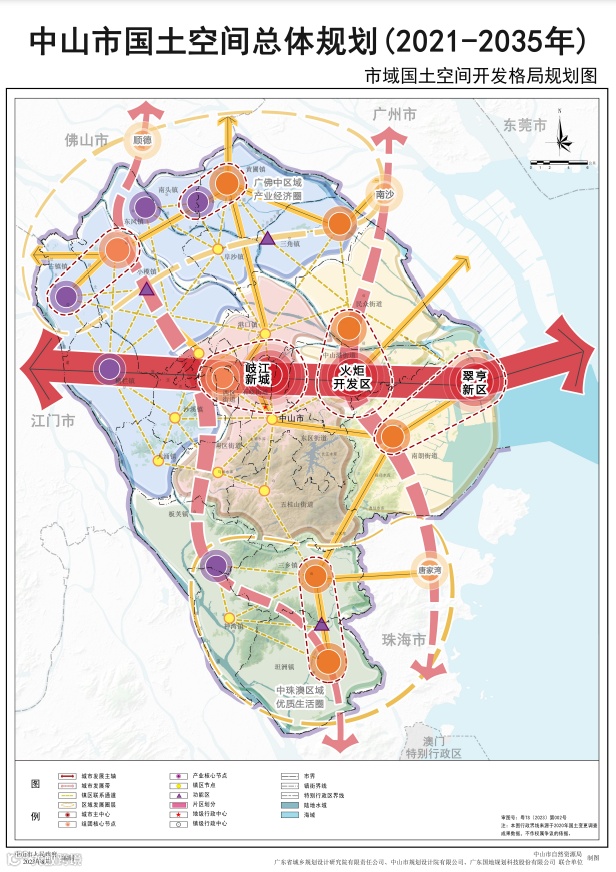 近日,《中山市国土空间总体规划(2021—2035年)》(下称《总规》)获省人民政府批复同意并正式印发,赋予了中山全新的城市定位:广东省珠江口东西两岸融合发展改革创新实验区、沿海经济带枢纽城市、粤港澳大湾区重要一极。