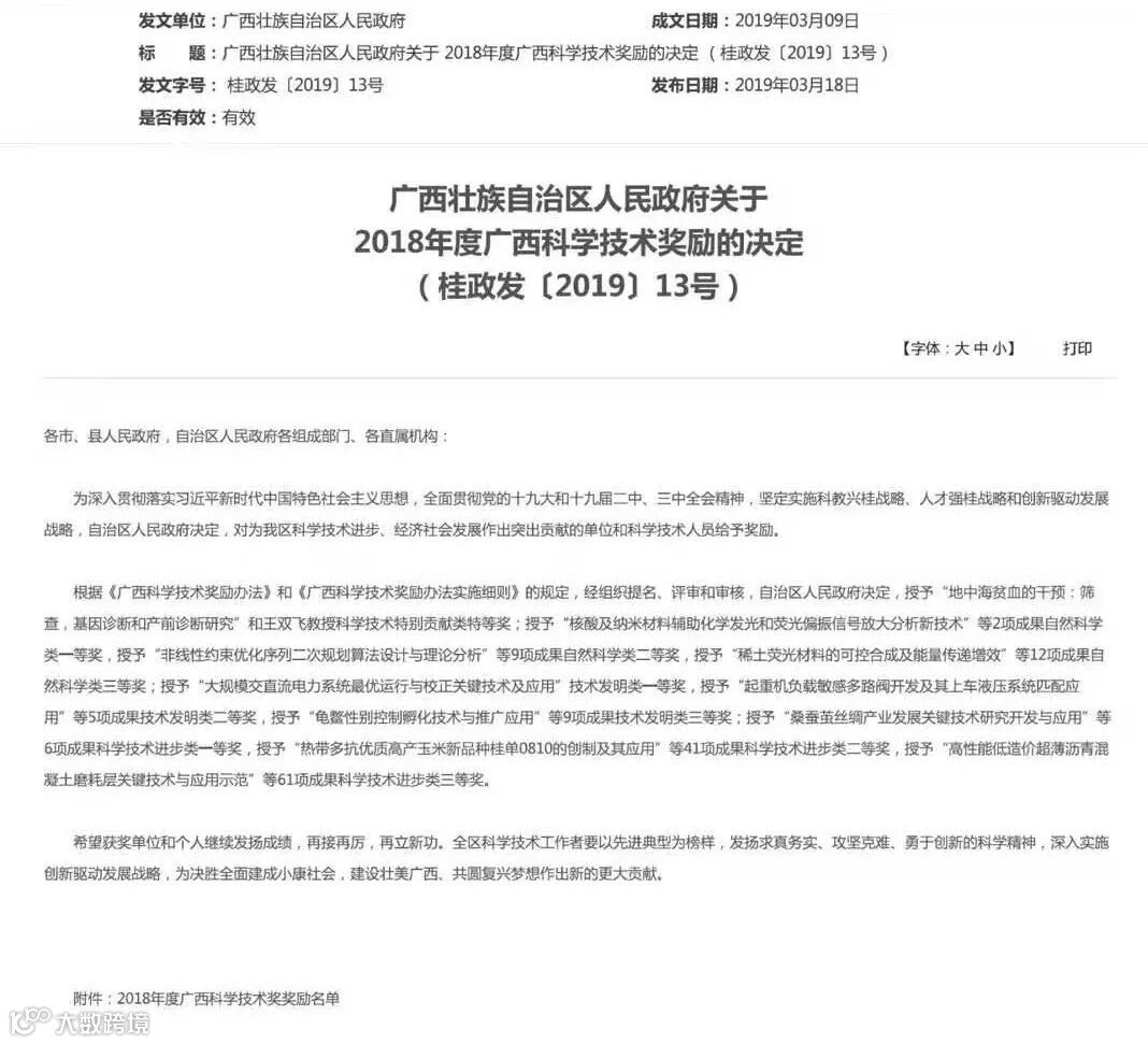 近日,广西科学技术奖励决定公布