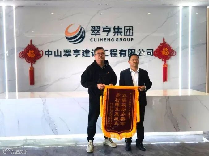 1月24日,南朗街道崖口村赠送翠亨建工公司“双联双助办实事 乡村蝶变惠民生”锦旗,感谢翠亨建工公司在崖口村开展的为民办实事、党员“入镇下乡”、“百日攻坚”活动,以及圆满完成G228道路沿线人居环境整治和提升、崖口村风貌提升等重点工作,为“百千万工程”建设贡献了重要国企力量。