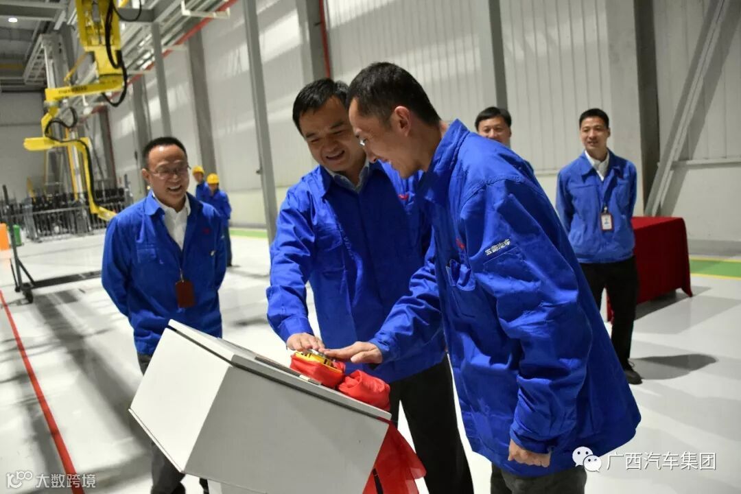 10月25日18时18分,广西汽车集团副总裁、工业公司常务副总经理陈晓峰,到现场按下桥壳电泳生产线生产启动按钮,见证后桥桥壳电泳产品顺利下线。